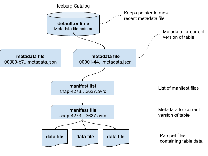 manifest_list: s3://my-bucket/default/ontime/metadata/snap-4273...3637.avro